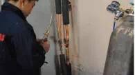 這是焊接完成后必須對銅管進(jìn)行的壓力測試,往銅管內(nèi)充入一定壓力的氮?dú)膺M(jìn)行保壓,一般壓力測試時(shí)間為24小時(shí)。